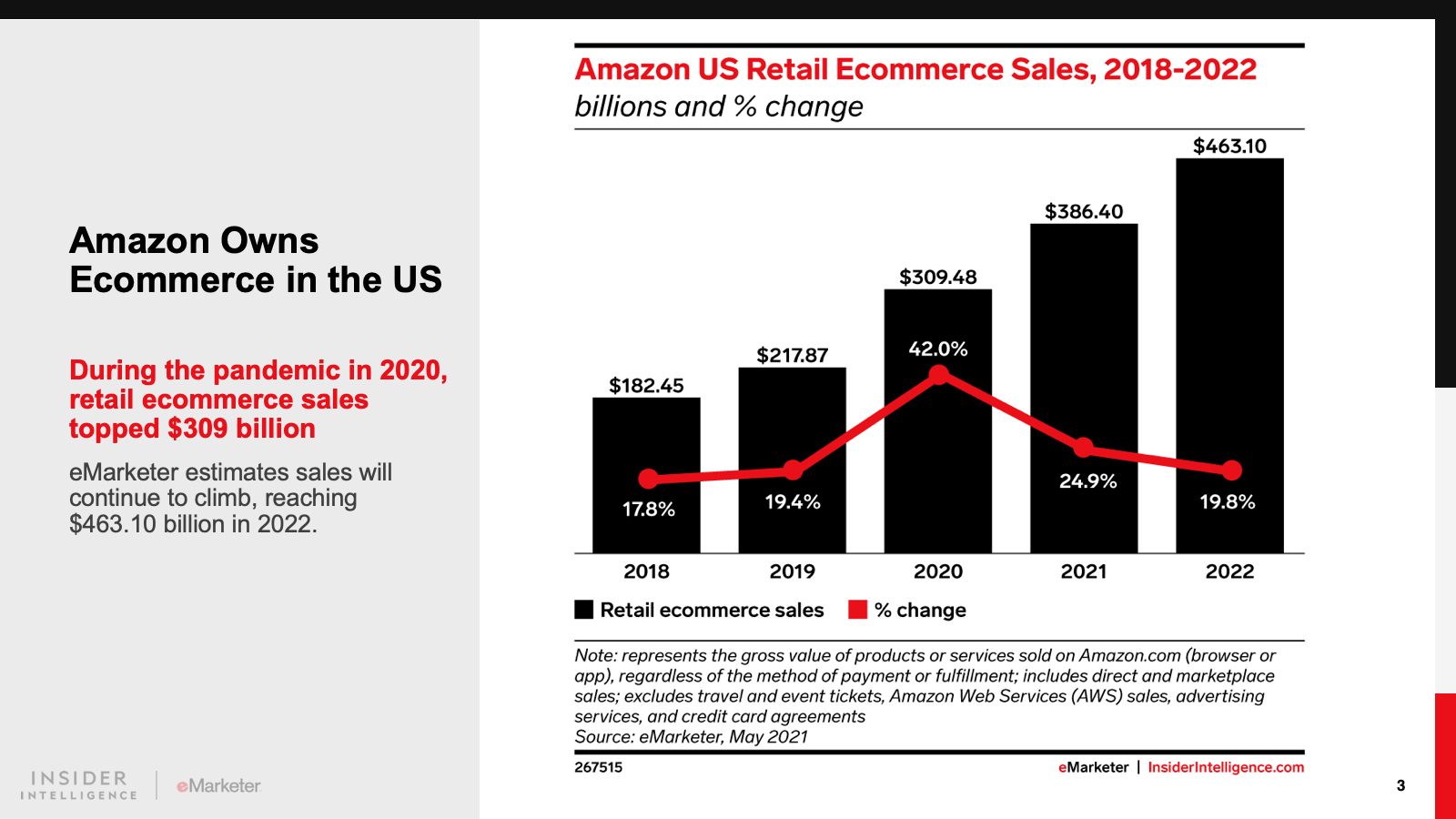 KEY STAT: Amazon owns ecommerce in the US, with sales expected to hit $386.40 billion in 2021, according to our forecast. With a market capitalization of almost $1.9 trillion as of mid-July, the company must find new areas with huge growth potential that build on its core ecommerce capability. The $4.01 trillion US healthcare market is a likely target.