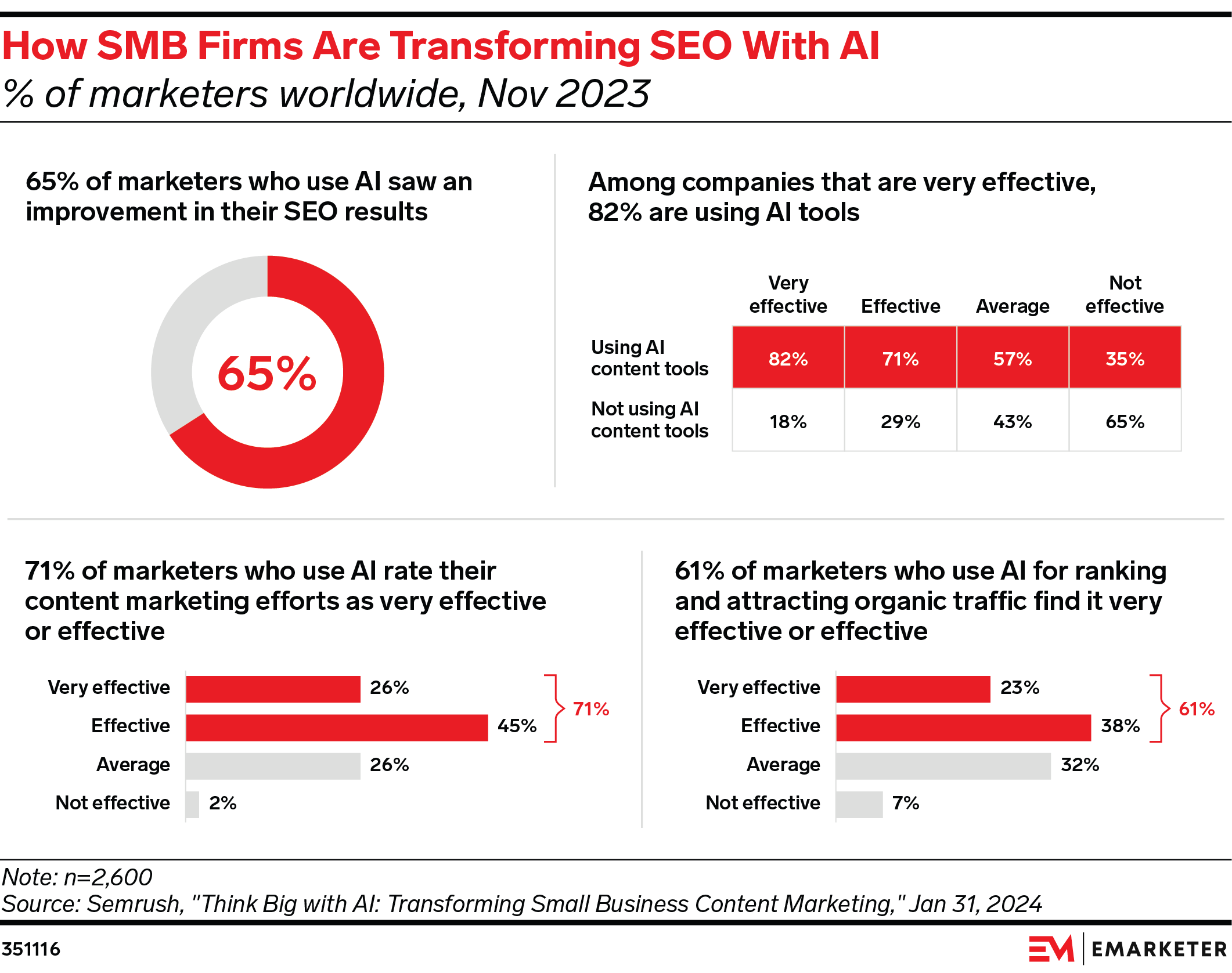 Key Stat: Two-thirds (65%) of respondents who use AI-generated content saw an improvement in their SEO results.