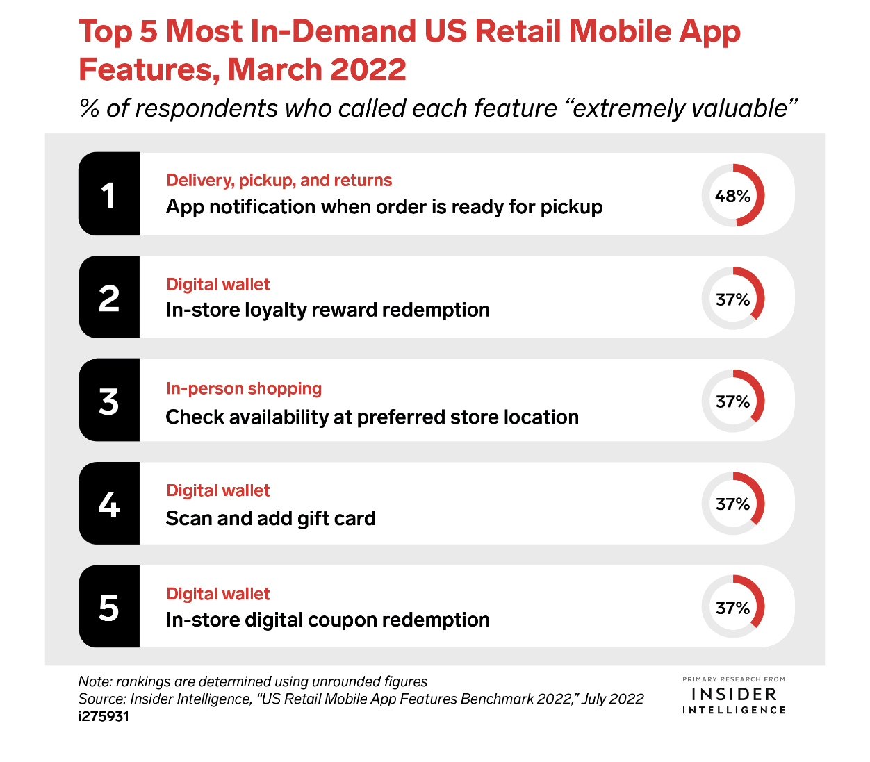 Go further: For more on what makes retail mobile apps sticky as well as which retailers’ apps had the most valuable features, see our US Retail Mobile App Features Benchmark 2022.