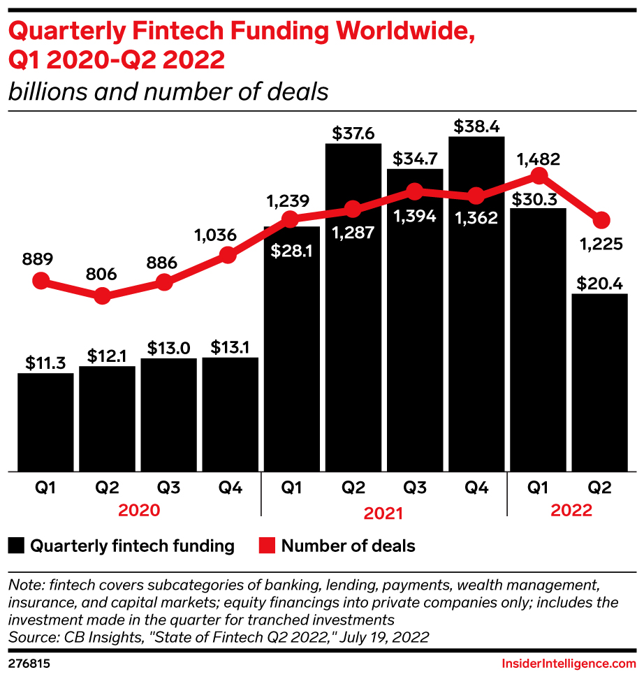 The bleaker market realities that characterized Q2 will likely continue for the rest of the year and may get worse before they improve. Investors will focus more on profitability and cash flow, rather than on customer acquisition at the expense of the bottom line. This will favor more mature fintechs that are generating profits and sustainable growth. Startups hemorrhaging cash to grow rapidly will be perceived as higher risk and will find it harder to secure financial backing.