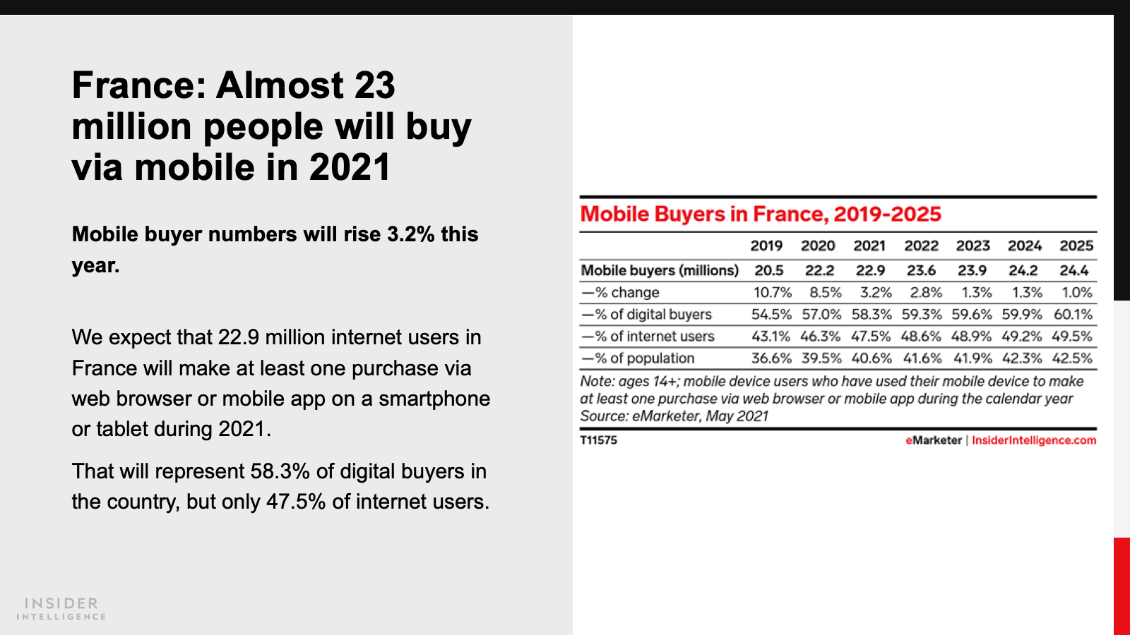 Buying via social platforms isn’t yet widespread in France and Germany. That said, we expect nearly 23% of internet users in France to be social buyers this year. Internet users in Germany are less engaged; fewer than one in five will buy via social networks in 2021.