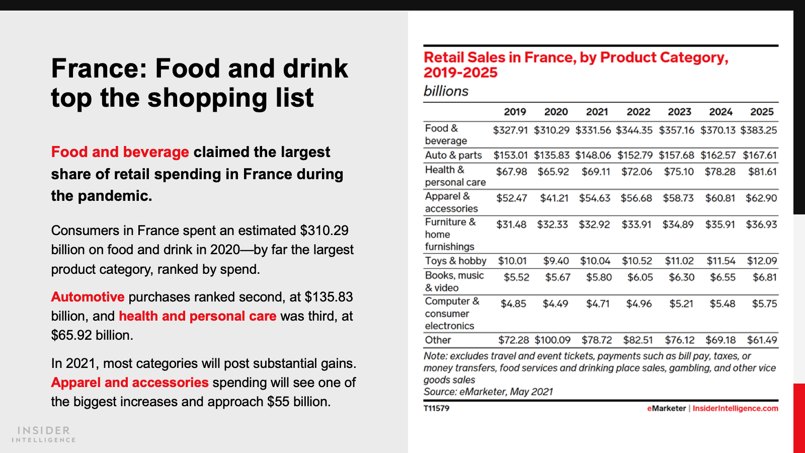 Both countries will pass milestones in 2021, as sales reach $81.03 billion (€71.06 billion) in France and $101.20 billion (€88.75 billion) in Germany. Annual growth rates will decline to single digits this year, as some retail trade returns to physical stores.