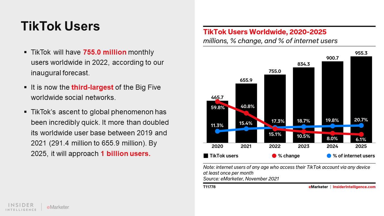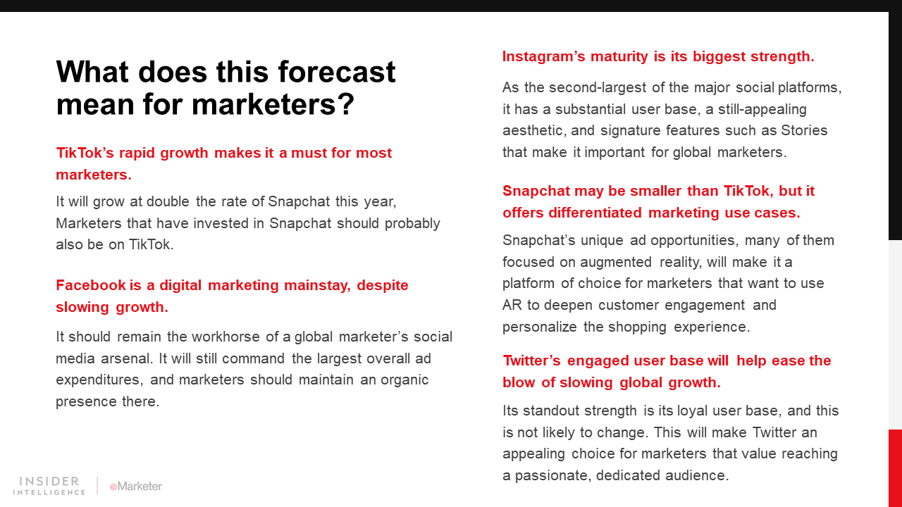 KEY STAT: Facebook is the leading social network by far, but our inaugural forecast reveals that TikTok is now the third-largest worldwide platform.