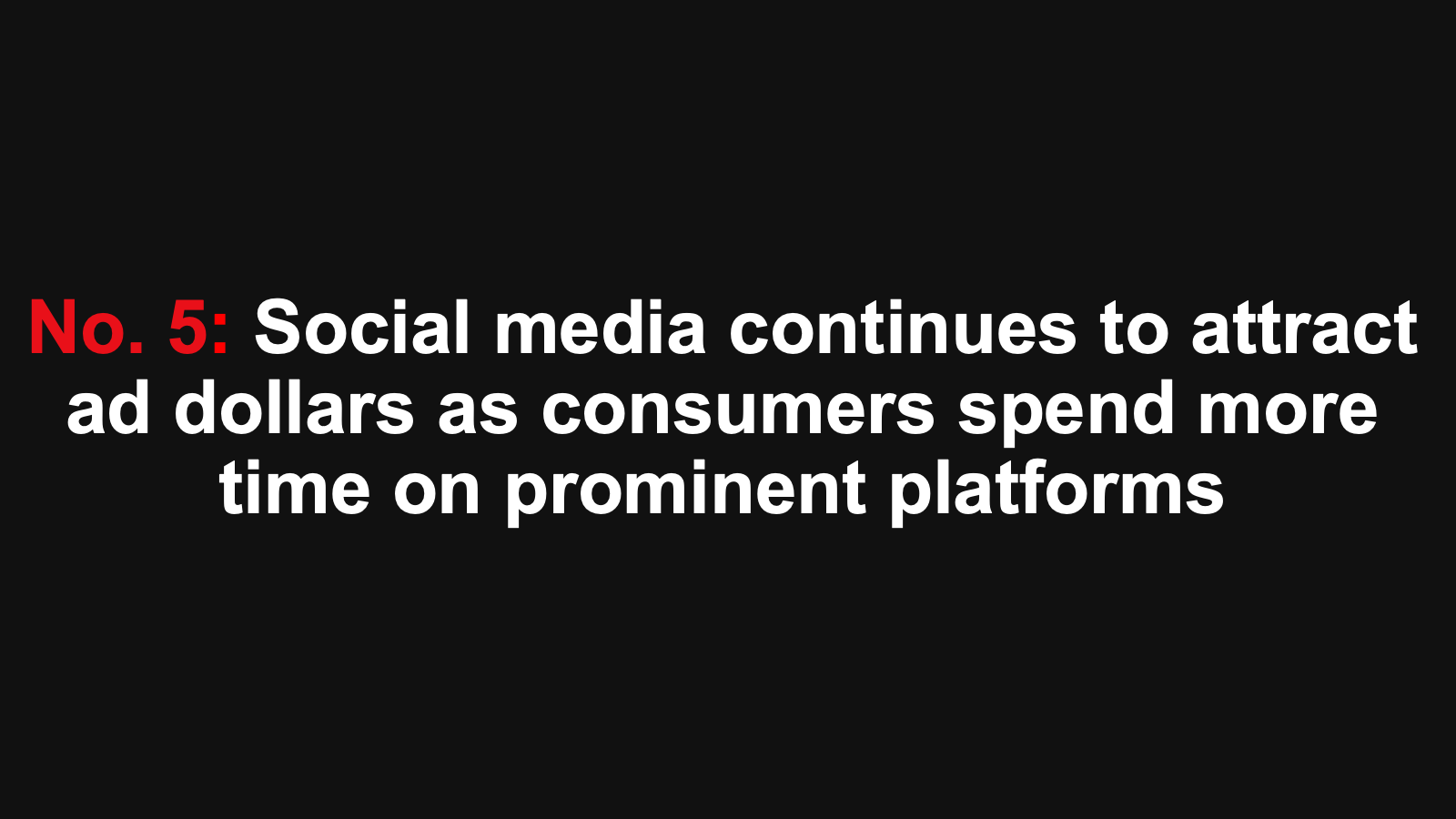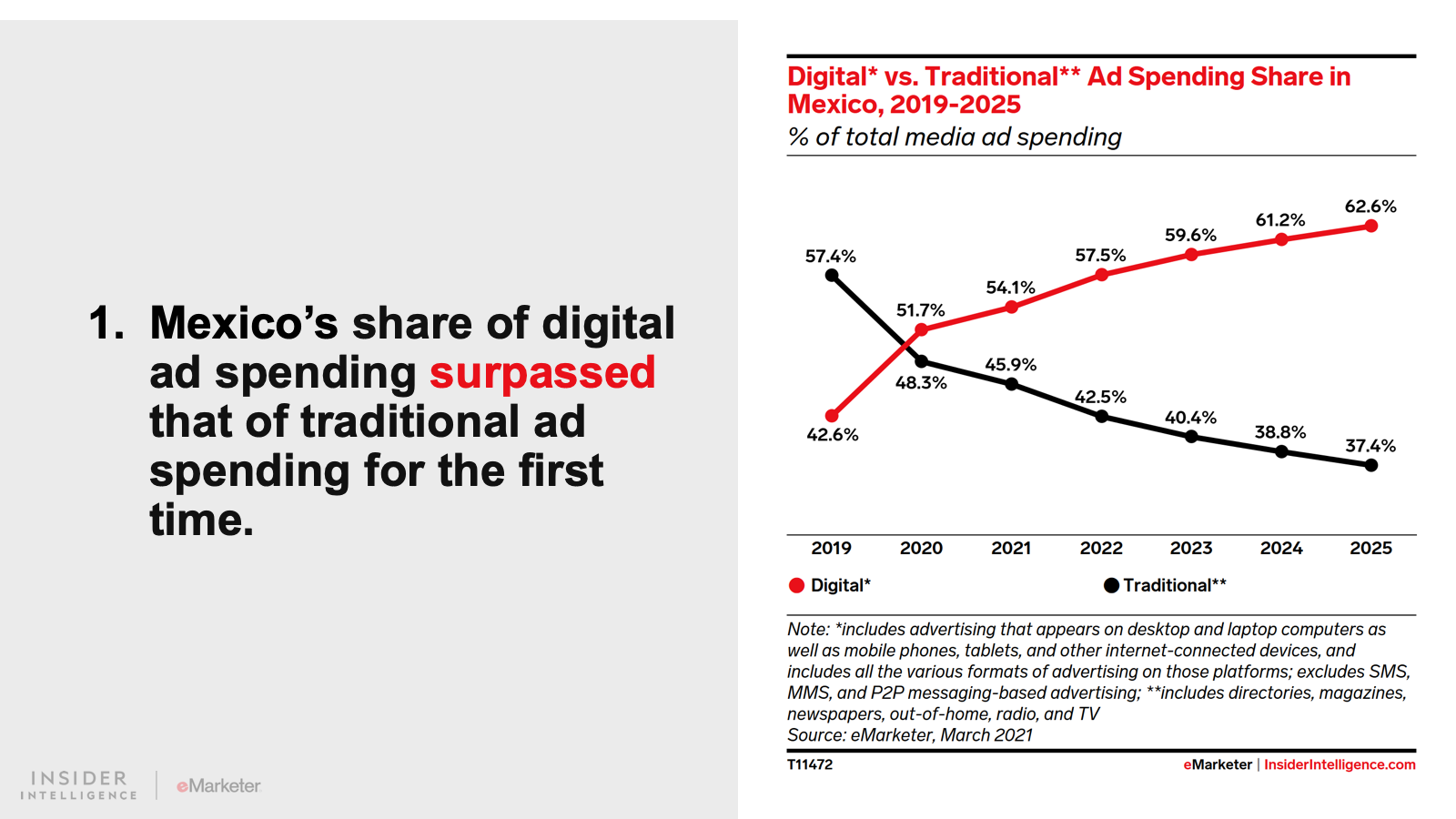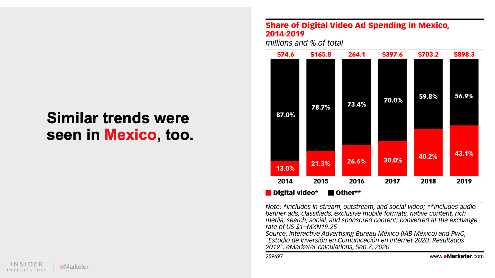 We expect that digital ad spending in Latin America will grow 15.0% to $9.96 billion. Spend will continue to grow at an accelerated pace as consumers adopt a more digital-first lifestyle. Digital platforms will claim 43.2% of all media spending, fueled by growth in the region’s two largest ad markets, Brazil and Mexico.
