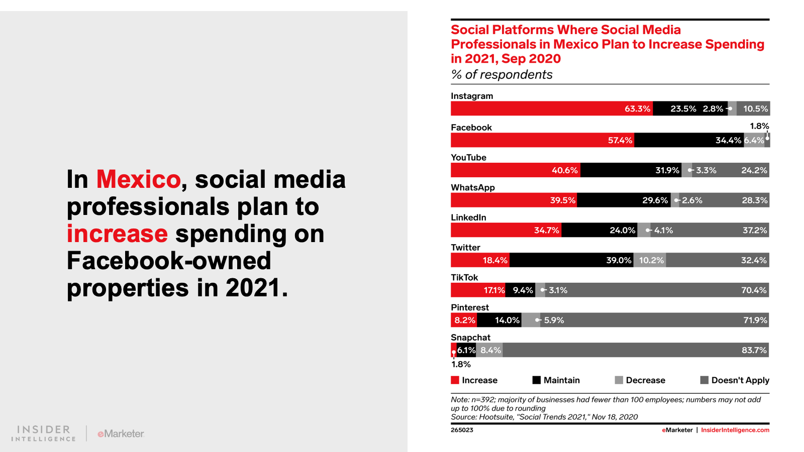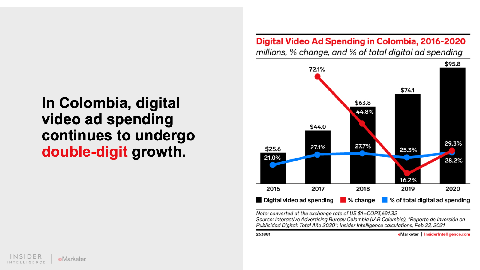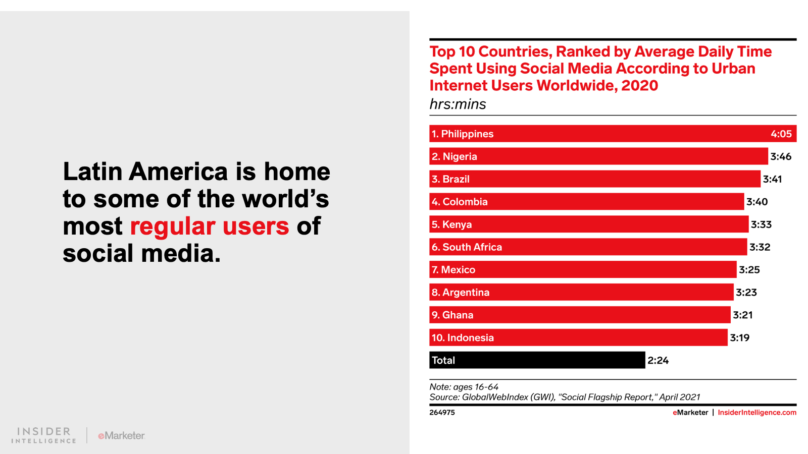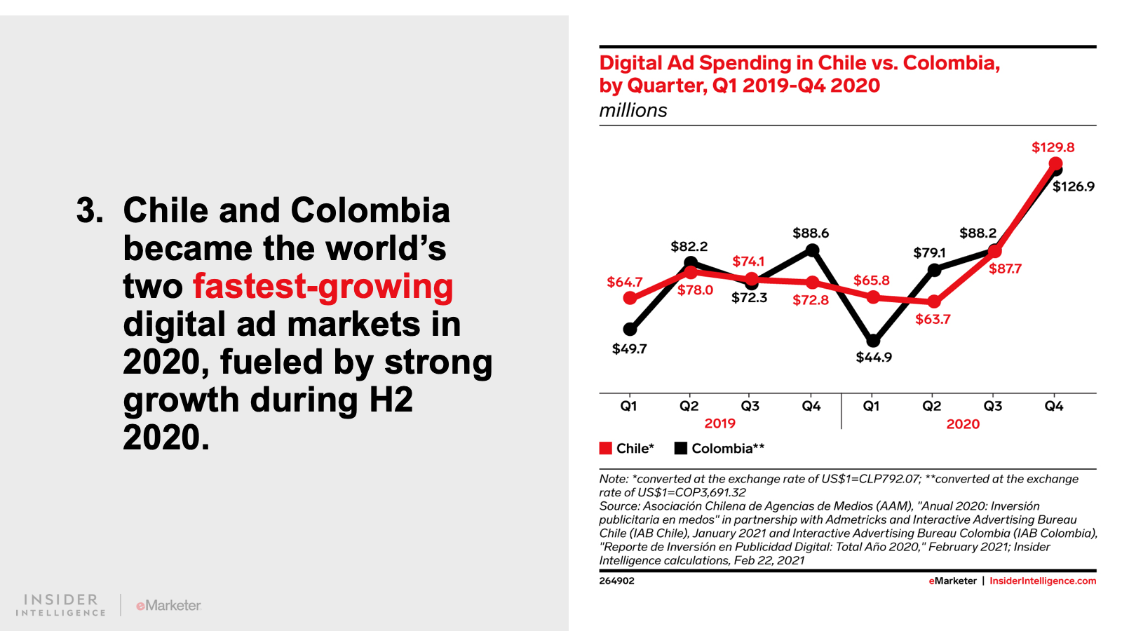 We expect that digital ad spending in Latin America will grow 15.0% to $9.96 billion. Spend will continue to grow at an accelerated pace as consumers adopt a more digital-first lifestyle. Digital platforms will claim 43.2% of all media spending, fueled by growth in the region’s two largest ad markets, Brazil and Mexico.