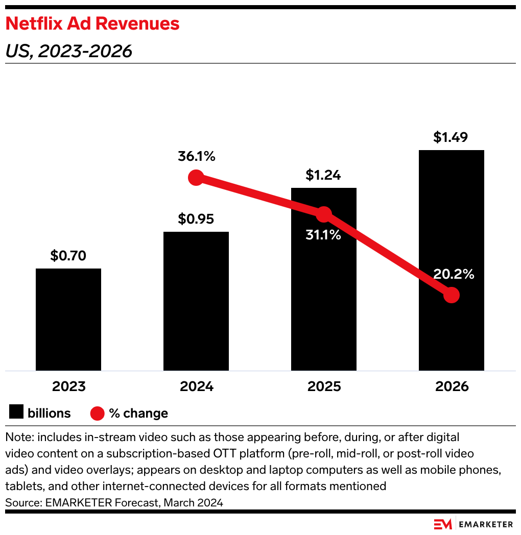 The ad picture: Advertising has become a burgeoning revenue stream for Netflix, delivering 65% to 70% sequential growth each quarter recently.