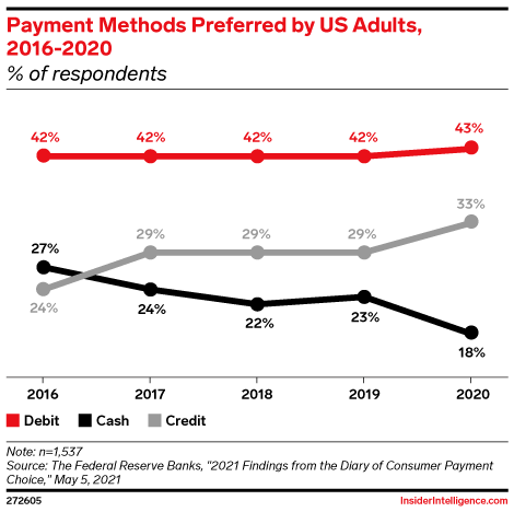 KEY STAT: The share of consumers citing cash as their preferred payment method fell by nearly 10 percentage points from 2016 to 2020, while card payments became more popular.