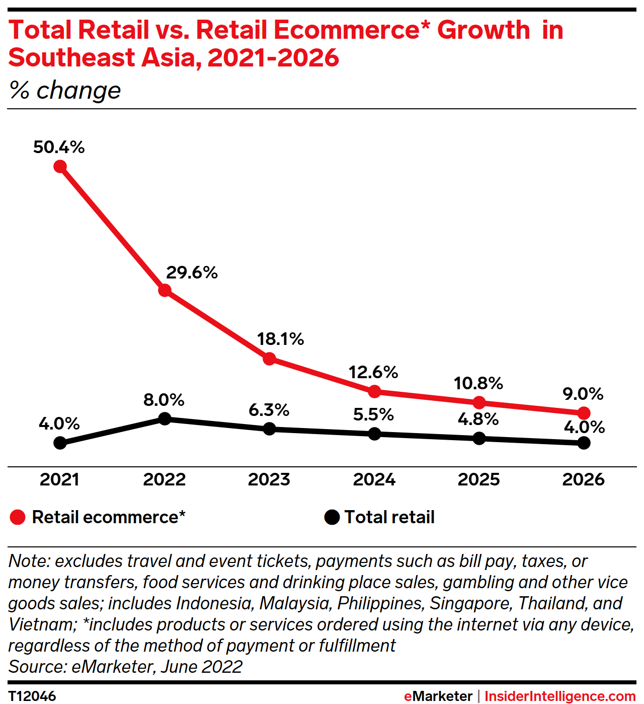 KEY STAT: In 2022, total retail sales in Southeast Asia will grow faster than they did last year, while retail ecommerce sales will continue to rise at a remarkable pace.