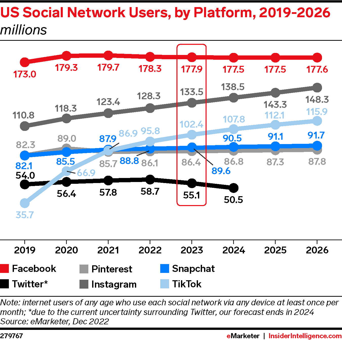 WHAT’S IN THIS REPORT? Our outlook for the US social media landscape in 2023, based on our latest forecasts for US social network users and ad revenues.